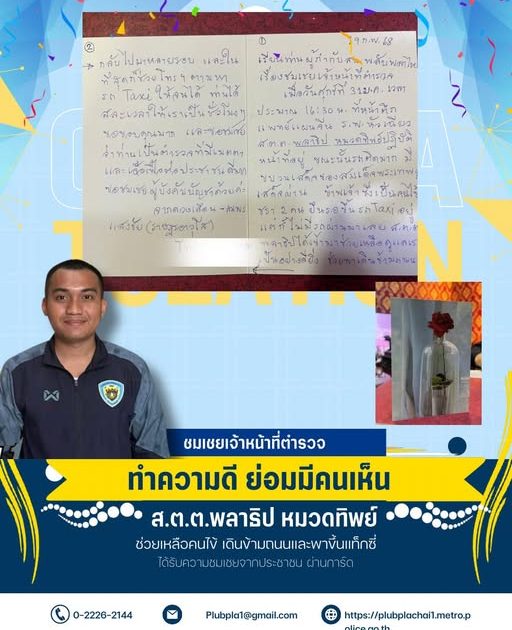 ได้ชมเชย ส.ต.ต.พลาธิป หมวดทิพย์ เจ้าหน้าที่ ตชส.สน.พลับพลาไชย 1