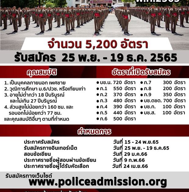 สำนักงานตำรวจแห่งชาติ เปิดรับสมัครบุคคลภายนอกฯ เพื่อบรรจุเป็นนักเรียนนายสิบตำรวจ พ.ศ.2565 จำนวน 5,200 อัตรา