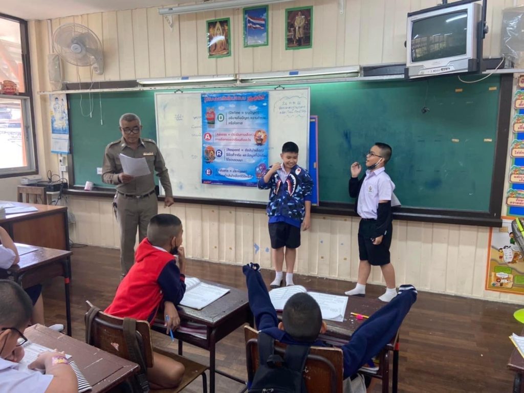 -ร.ต.ท.มงคล วิเทหะ(ครูตำรวจ D.A.R.E) ให้ความรู้ตามโครงการการศึกษาเพื่อต่อต้านการใช้ยาเสพติดในเด็กนักเรียน (D.A.R.E) แก่ นักเรียนชั้น ป.5 โรงเรียนวัดดิสานุการาม