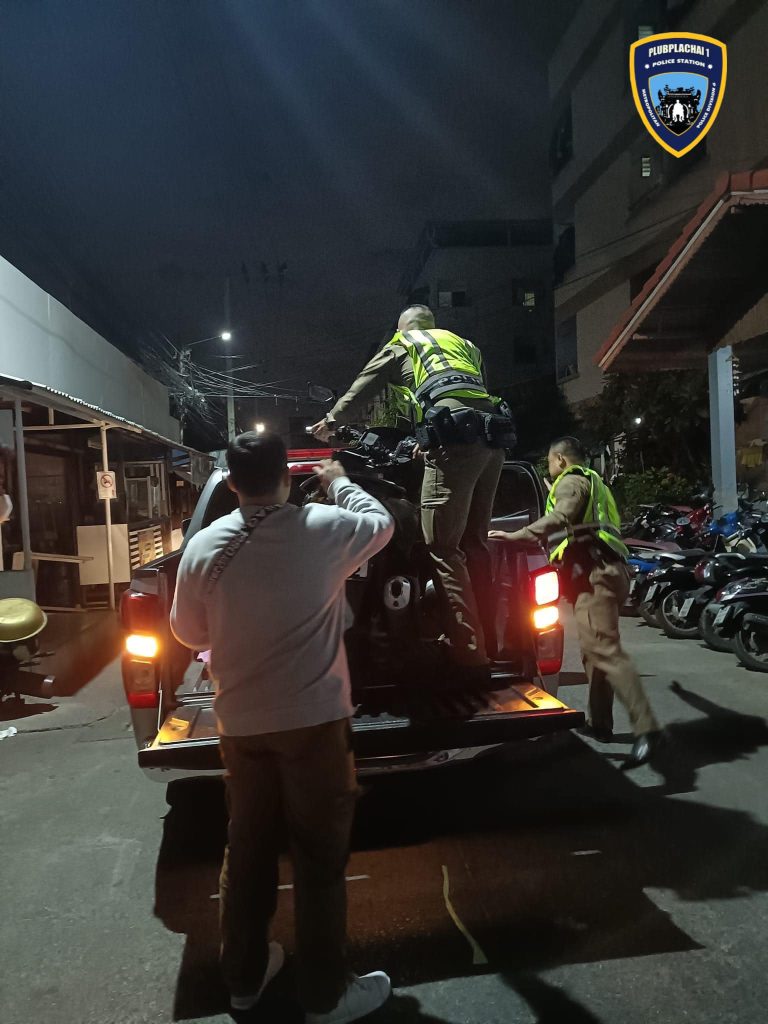 พบเป็นรถจยย.ยางแตก ไม่สามารถเดินทางต่อไปได้ สอบถามได้ความว่า จะกลับที่พักที่ซอยรามคำแหง 81 จึงได้ทำการช่วยเหลือนำรถจยย.ขึ้นบรรทุกที่ท้ายกระบะรถยนต์สายตรวจ นำส่งที่พักต่อไป