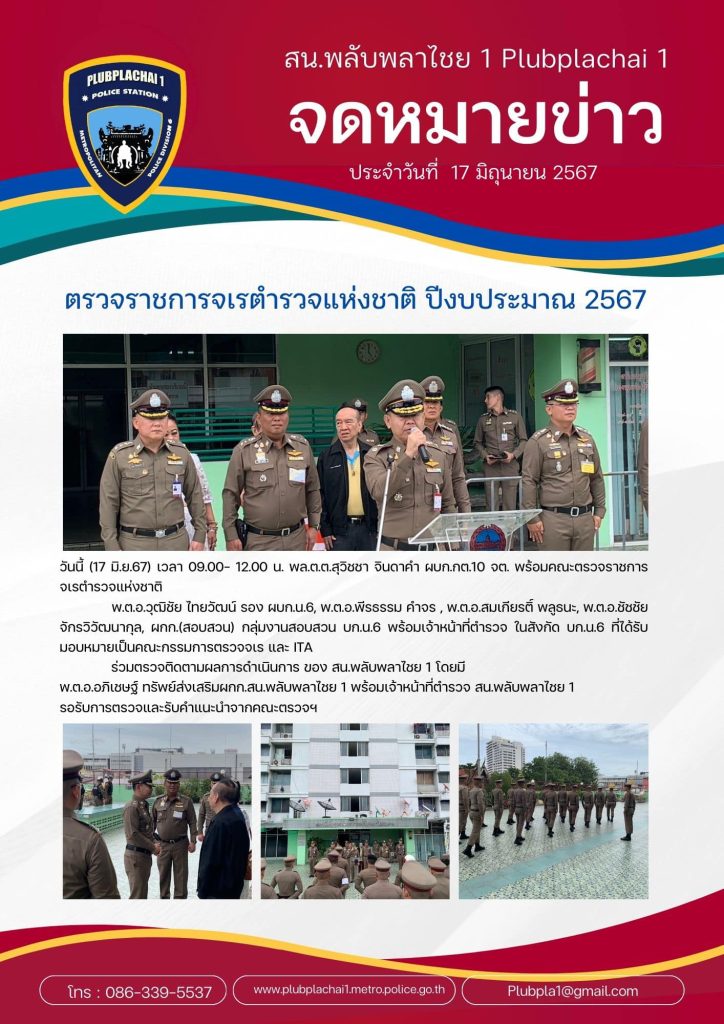 ร่วมตรวจติดตามผลการดำเนินการ ของ สน.พลับพลาไชย 1 โดยมี