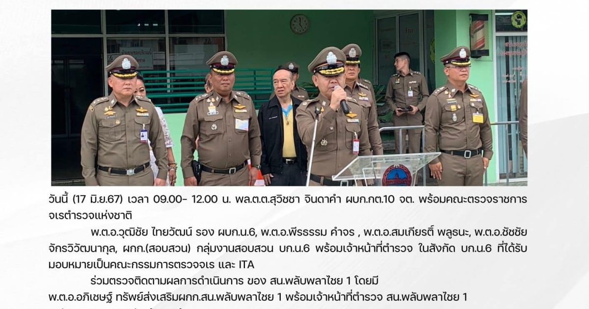 พ.ต.อ.วุฒิชัย ไทยวัฒน์ รอง ผบก.น.6, พ.ต.อ.พีรธรรม คำจร , พ.ต.อ.สมเกียรติ์ พลูธนะ, พ.ต.อ.ชัชชัย จักรวิวัฒนากุล, ผกก.(สอบสวน) กลุ่มงานสอบสวน บก.น.6 พร้อมเจ้าหน้าที่ตำรวจ ในสังกัด บก.น.6 ที่ได้รับมอบหมายเป็นคณะกรรมการตรวจจเร และ ITA