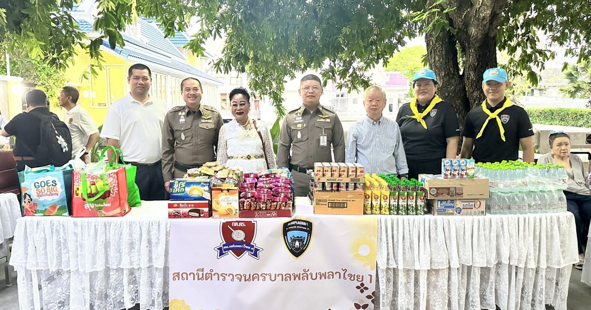 นำข้าราชการตำรวจ ร่วมตักบาตรอาหารแห้งแด่พระภิกษุสงฆ์ จำนวน 140 รูป ในโครงการบรรพชาและอุปสมบทพระนวกะ โรงเรียนนายร้อยตำรวจ