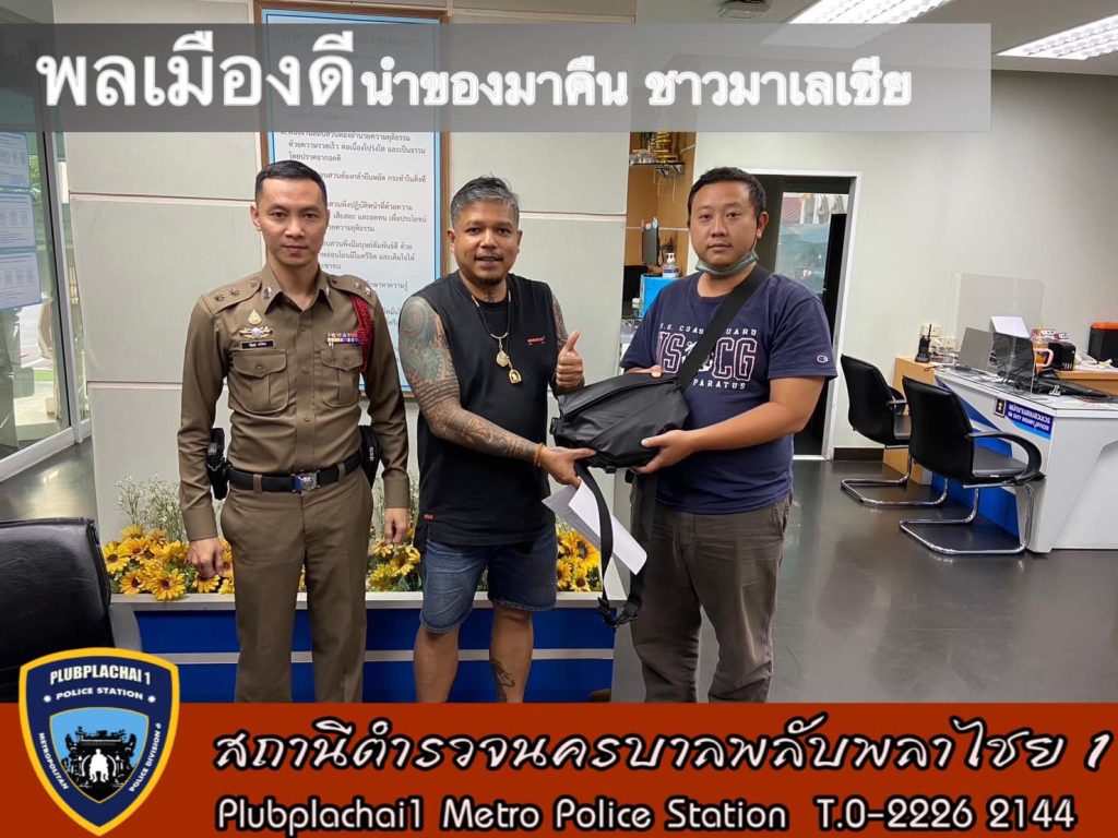 ฝ่ายสืบสวนรับแจ้งจาก พลเมืองดี ซึ่งเป็นเจ้าของร้าน ฃวันเดอร์สยาม แจ้งว่าวันนี้ได้มีลูกค้าลืมกระเป๋าไว้ในร้าน ซึ่งมีของมูลค่าหลายรายการ จากนั้นฝ่ายสืบสวนจึงได้ติดต่อหาเจ้าของกระเป๋าเพื่อให้มารับคืน ซึ่งทราบชื่อภายหลังว่า Mr.Saw Kang wei สัญชาติมาเลเซีย จากนั้นจึงได้ติดต่อให้เจ้าของกระเป๋ามารับคืน ที่สน.พลับพลาไชย1 เป็นที่เรียบร้อย