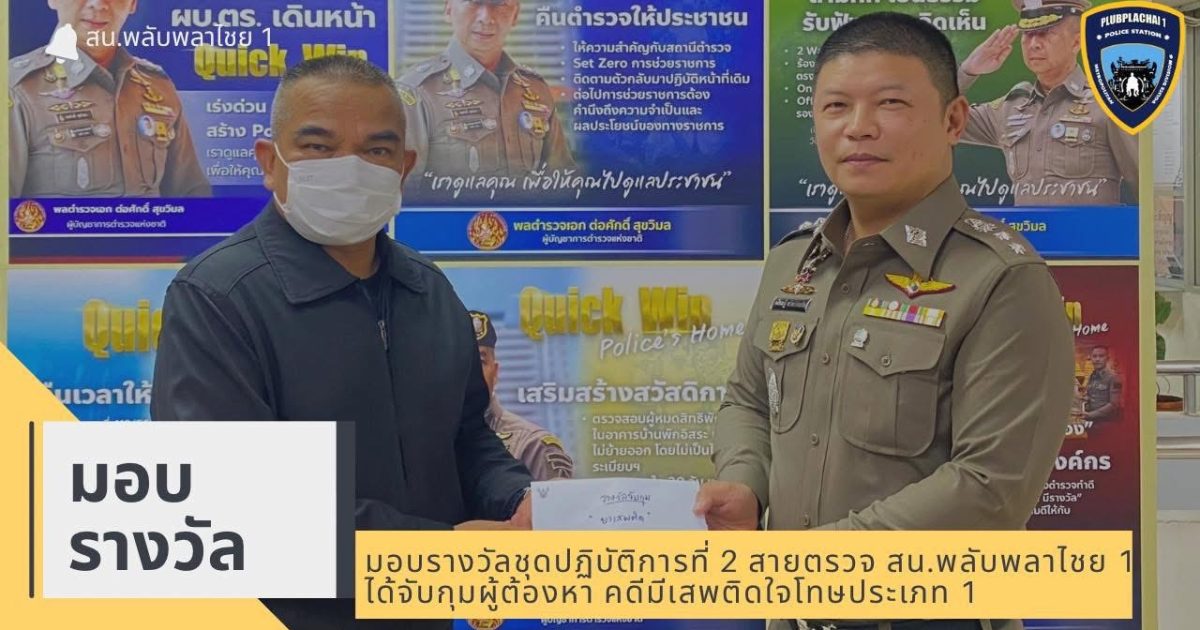 มอบรางวัลชุดปฏิบัติการที่ 2 สายตรวจ สน.พลับพลาไชย 1