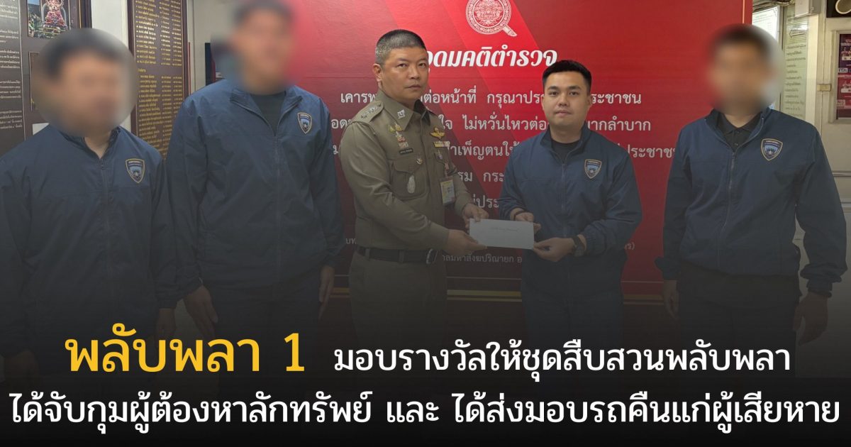 พ.ต.อ.อภิเชษฐ์ ทรัพย์ส่งเสริม ผกก.สน.พลับพลาไชย 1 ได้มอบรางวัลแก่ชุดสืบสวนเพื่อเป็นขวัญและกำลังใจแก่ผู้ปฏิบัติหน้าที่ ที่ทุ่มเทปฏิบัติงานจนสามารถติดตามจับกุมผู้กระทำความผิดและนำทรัพย์สินคืนสู่ประชาชนได้อย่างรวดเร็ว