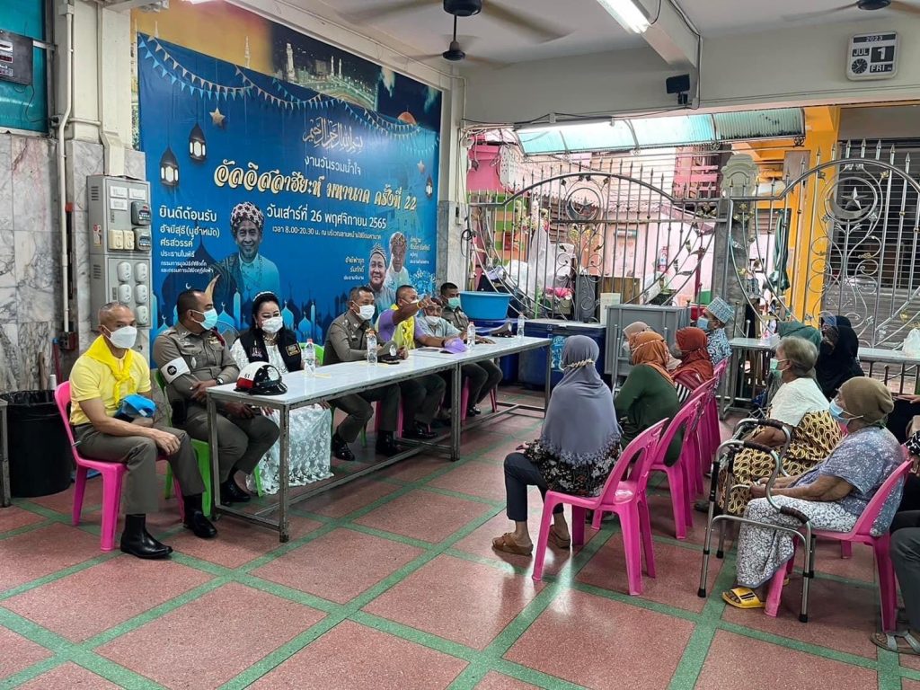 สวป.สน.พร้อมด้วย ข้าราชการตำรวจจิตอาสาพระราชทาน,คุณดุจษะนันทน์ จักเดชไชย กต.ตร.สน.พลับพลาไชย 1,ข้าราชการตำรวจ ฝ่าย ป.,จร.,สืบ,ชุดตชส.สน.พลับพลาไชย 1 โดยมี นายสมาน เมฆลอย ประธานชุมชนมัสยิดมหานาค ,กรรมการ ,อาสาประจำชุมชนมัสยิดมหานาค,คณะกรรมการชุมชนยั่งยืน ออกตรวจเยี่ยมพบปะสอบถามปัญหาความเดือดร้อนภายใน ชุมชนมัสยิดมหานาค และให้ความรู้ มาตรการเกี่ยวกับยาเสพติด แก่นักเรียนโรงเรียนบำรุงอิสลามวิทยา,ติดสติ๊กเกอร์แจ้งเหตุอาชญกรรม ยาเสพติด ณ ชุมชนมัสยิดมหานาค