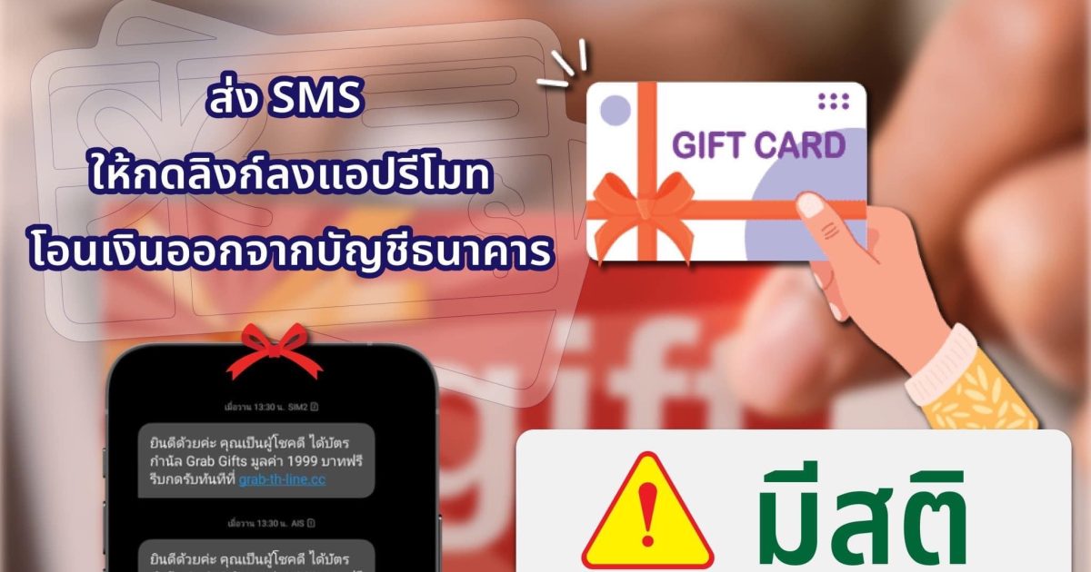 ๑) SMS Grab ปลอมหลอกรับบัตรกำนัล Grab Gifts