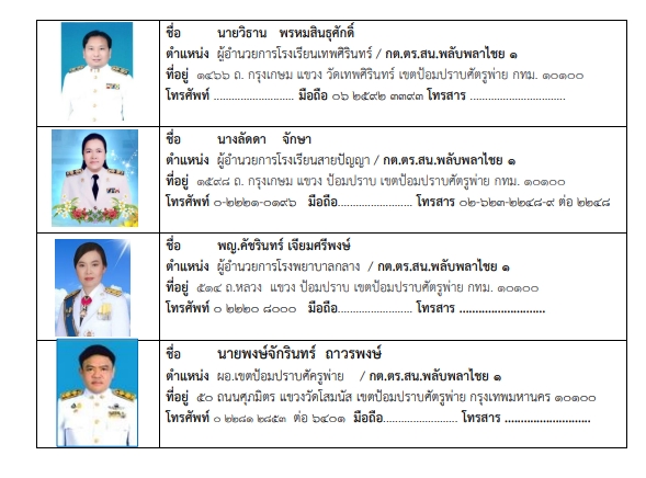 ข้อมูลการติดต่อ