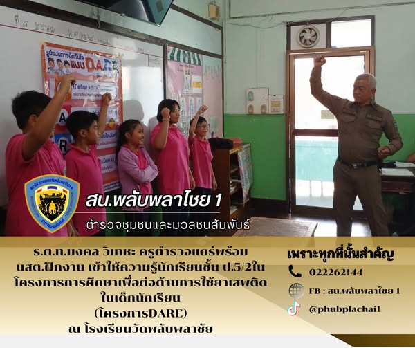 (โครงการ D.A.R.E.) #ตำรวจชุมชนสัมพันธ์ #ตชสพลับพลา #ตำรวจปราบปรามสอนเเดร์ วันนี้(8 ม.ค. 68 ) ร.ต.ท.ม