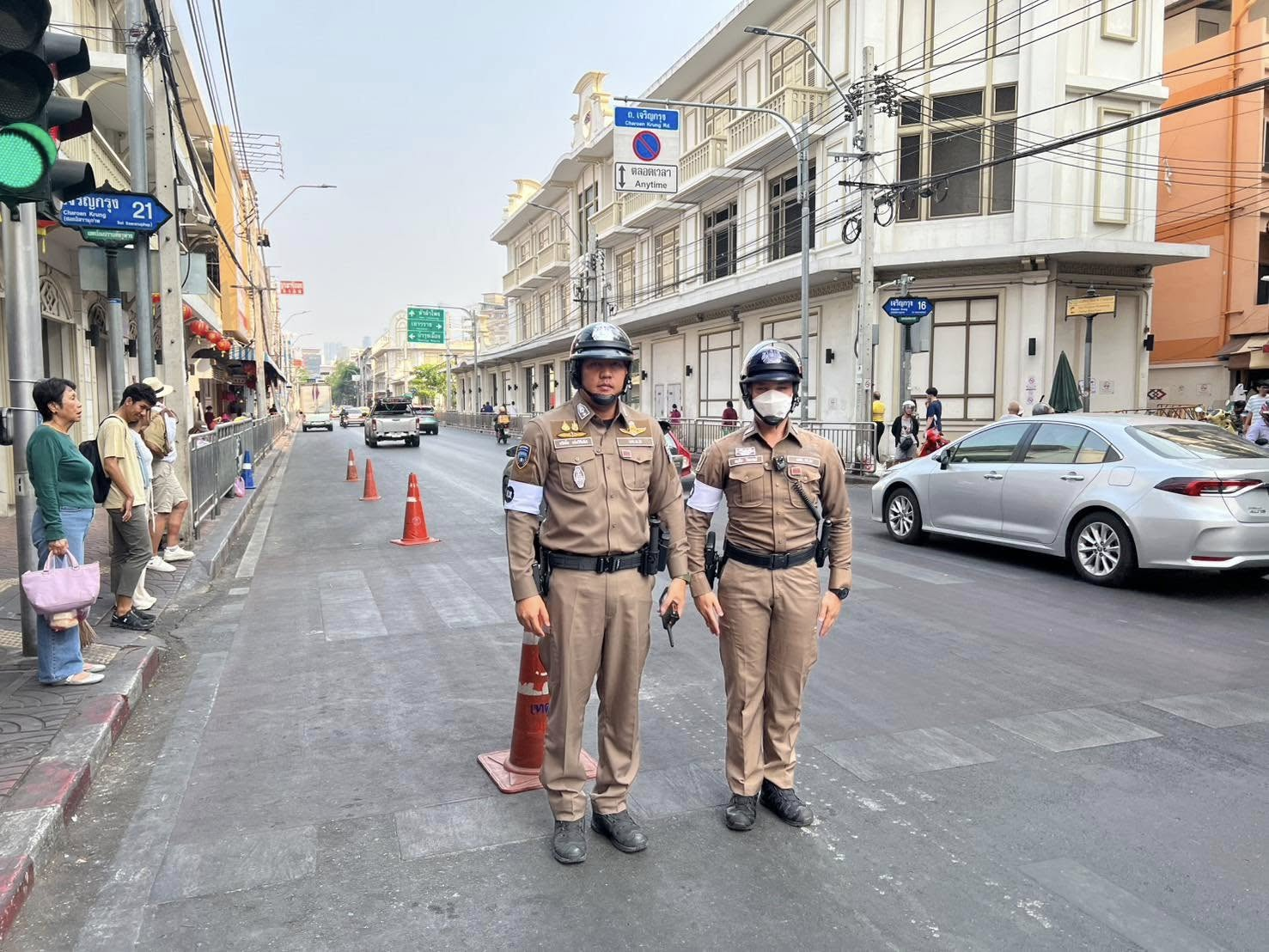 งานจราจร สน.พลับพลาไชย 1 เจ้าหน้าที่ตำรวจจราจร สน.พลับพลาไชย 1 อำนวยการจราจรบริเวณทางข้ามวัดมังกรฯ ถ