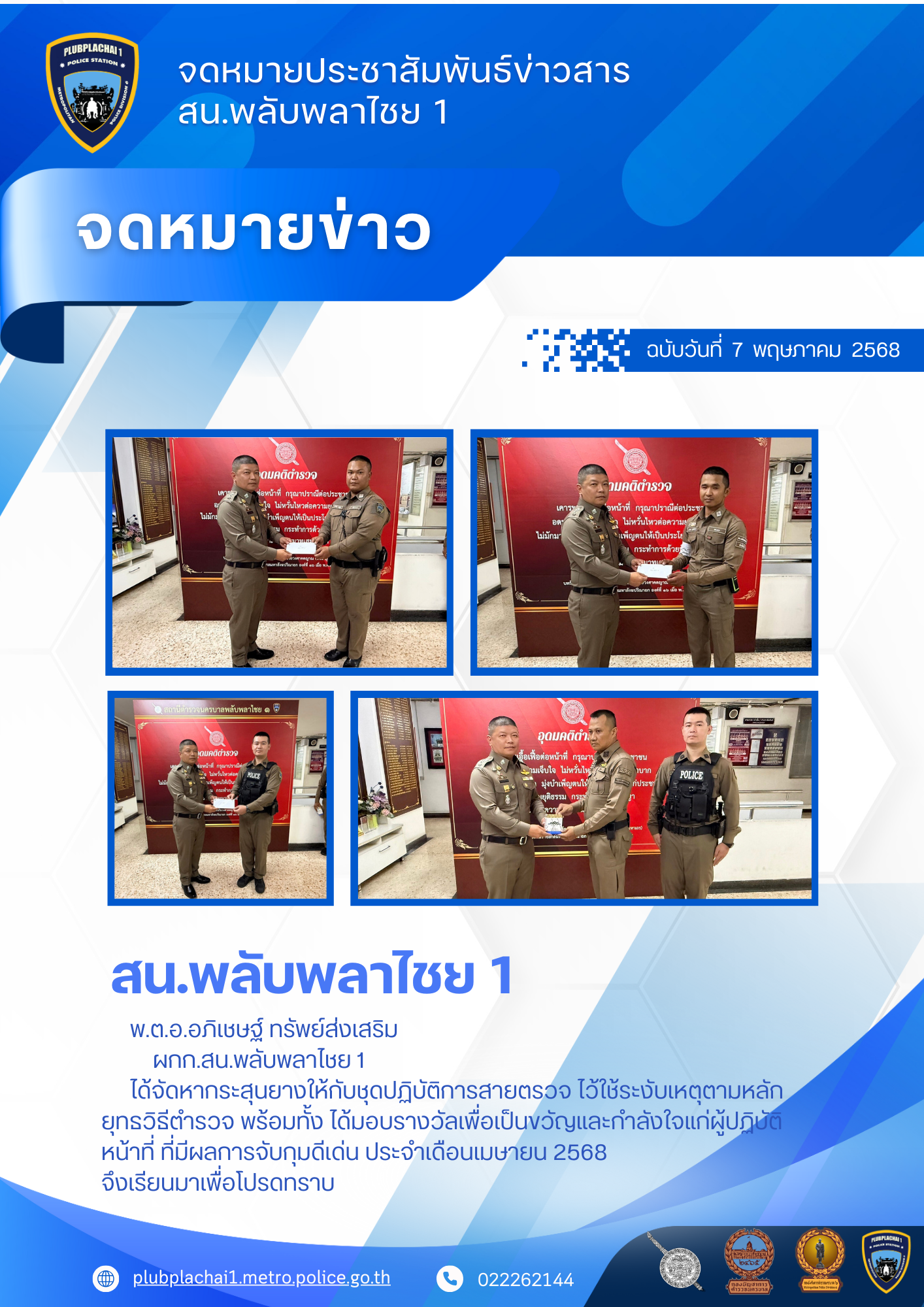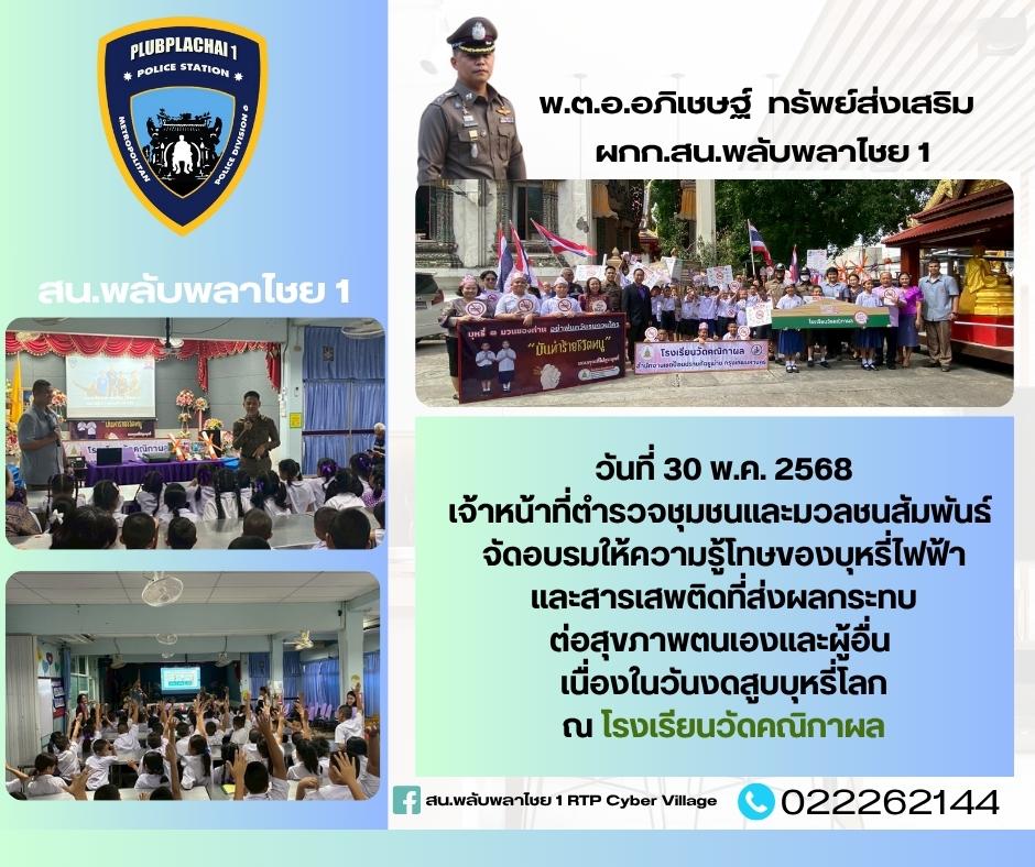 เรียนผู้บังคับบัญชา สน.พลับพลาไชย 1 วันนี้(20 พ.ค.68)เวลา 11:10 น. ภายใต้การอำนวยการ 💠พ.ต.อ.อภิเชษฐ์