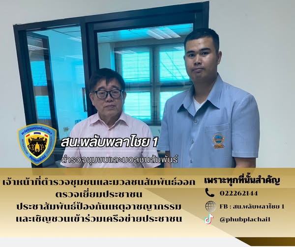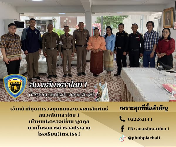 สน.พลับพลาไชย 1 วันนี้ 15 ม.ค. 68 เวลา 10.00 น. พ.ต.อ.อภิเชษฐ์ ทรัพย์ส่งเสริม ผกก.สน.พลับพลาไชย 1 พ.