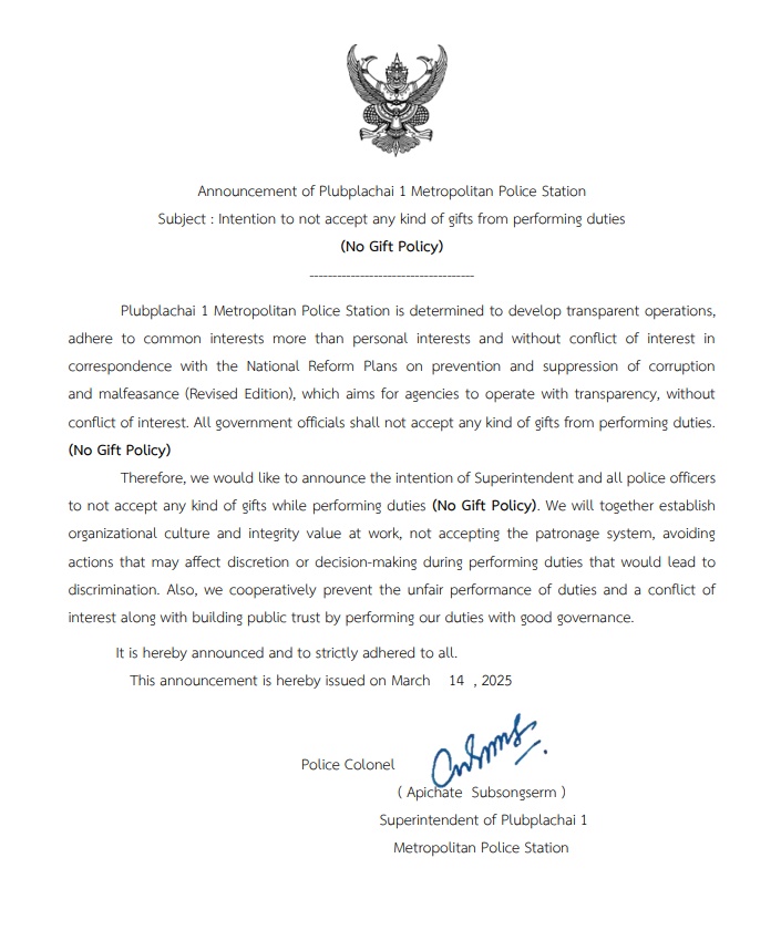 O18 ประกาศนโยบายต่อต้านการรับสินบน (Anti-Bribery Policy)